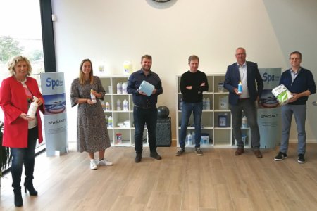De broers Wim en Paul Beyens van de zeepziederij WimPau in Eindhout (Laakdal) overhandigden de opbrengst van hun deelname aan de Open Bedrijvendag aan de G-tafeltennissers van TTC Geel.